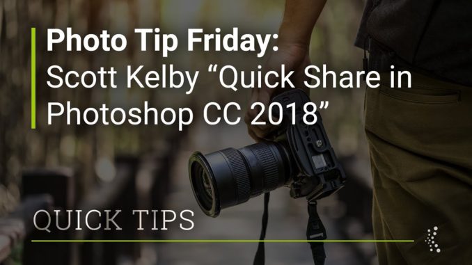 Basics of Photography Photo Tip Friday: Scott Kelby βQuick Share in Photoshop CC 2018β August 12, 2018 John Comments Off on Photo Tip Friday: Scott Kelby βQuick Share in Photoshop CC 2018β